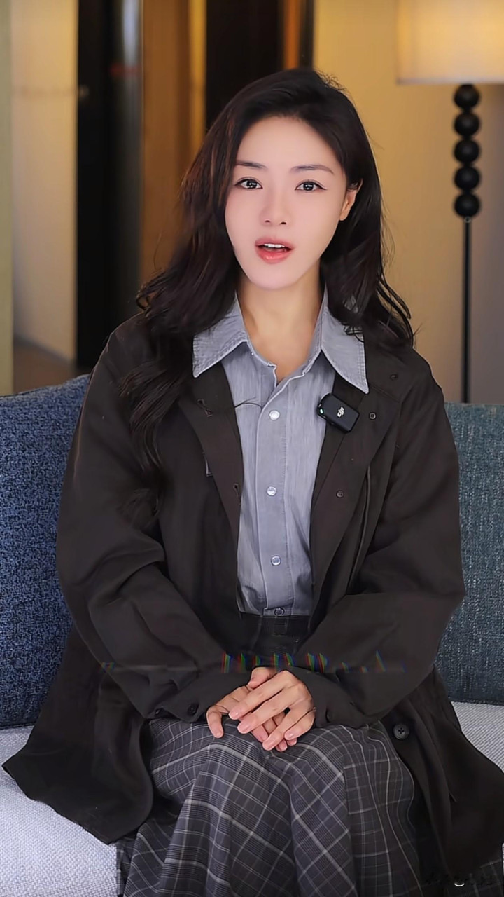 > 42岁邓家佳最新穿搭: 衬衫+黑外套+格子裙, 时髦又减龄, 美得像30